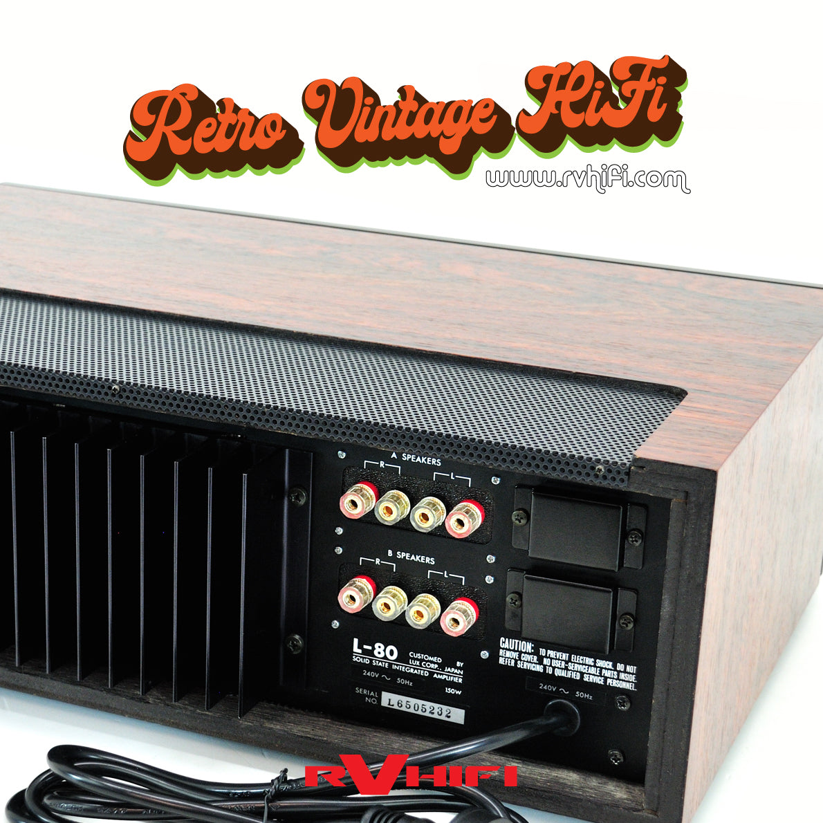 Luxman's best seller from the 1970s, this L-80 stereo integrated amplifier has been completely restored, with new high quality capactors and transistors. Speaker terminals up-graded to banana plugs for a secure connection. Sound quality is superb, great dynamics and output and exterior condition is excellent.