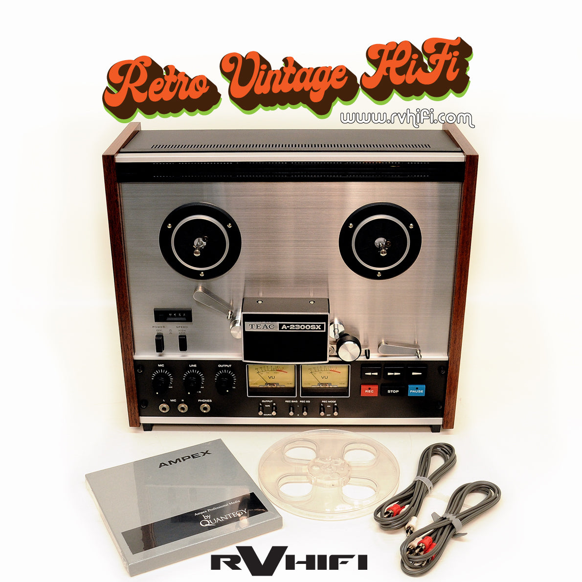 This TEAC A-2300SX open reel tape deck is in pristine condition, with minimal use and no wear on the tape heads. All electrolytic capacitors are within specification, and the unit has undergone a thorough service and cleaning. The veneer sides, previously faded, have been restored to a better-than-new appearance. The machine operates flawlessly, with robust fast forward and rewind motors. The recording and playback quality is exceptional. Additionally, a set of authentic New Old Stock TEAC RCA leads, an empty take-up reel, and a new sealed AMPEX blank tape reel are included.
