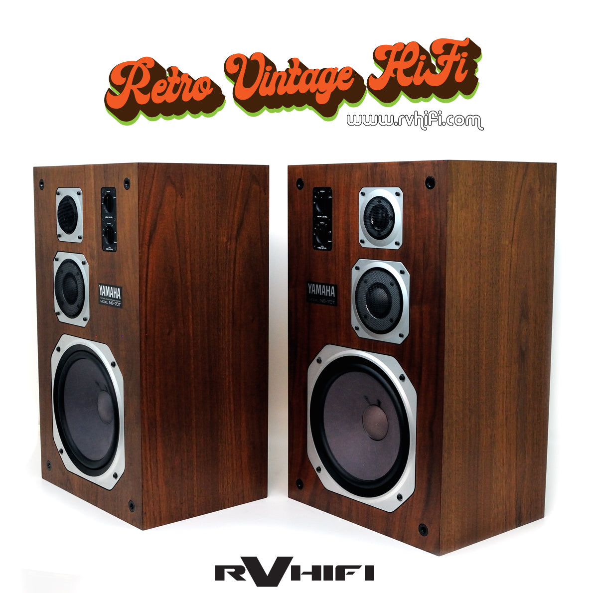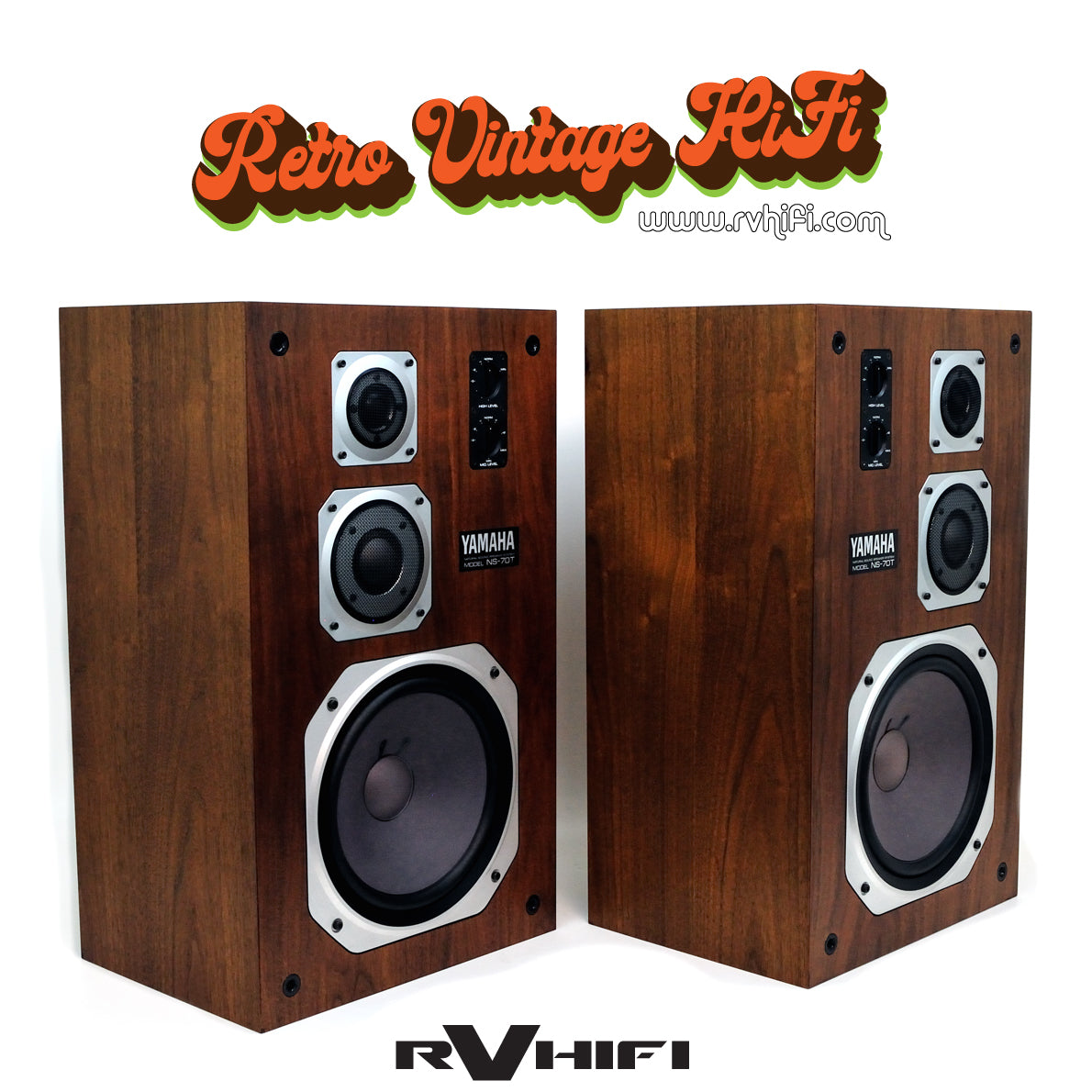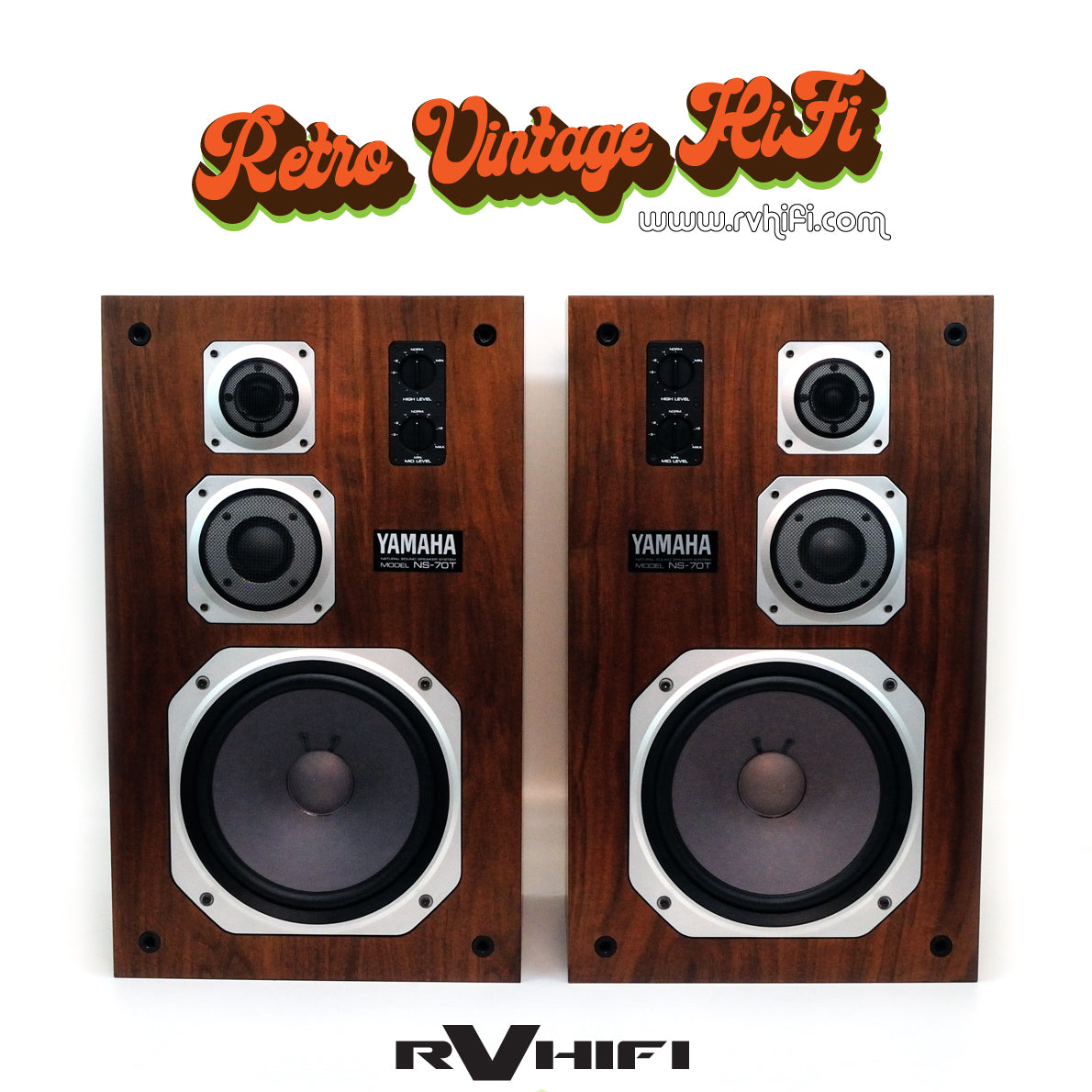 Yamaha NS-70T floor standing speakers are a rare three-way design from 1978 with genuine wood veneer cabinets, new grille fabric, and upgraded crossover capacitors and speaker terminals. Their condition is superb and sound quality stunning, featuring extended high end from the tweeters, revealing midrange comparable to more expensive loudspeakers, and ample bass extension without a subwoofer. These relatively efficient, sealed box floor standers will provide excellent audio quality for extended use.